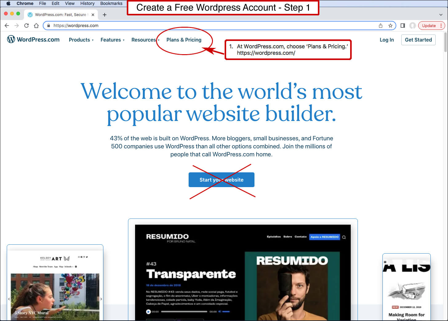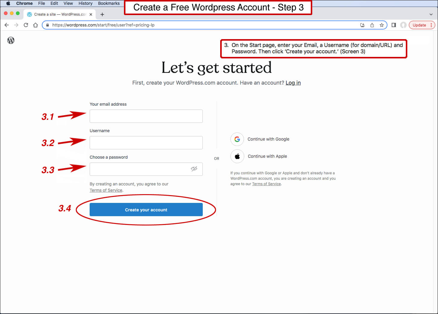 Five steps to create a Free WordPress account with a website and/or blog.