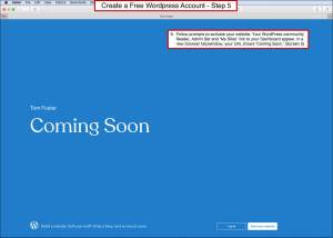 Follow prompts to activate website. The WordPress Reader, Admin Bar and ‘My Sites’ link to the Dashboard appear. Your domain/URL shows ‘Coming Soon.’ (5th image)